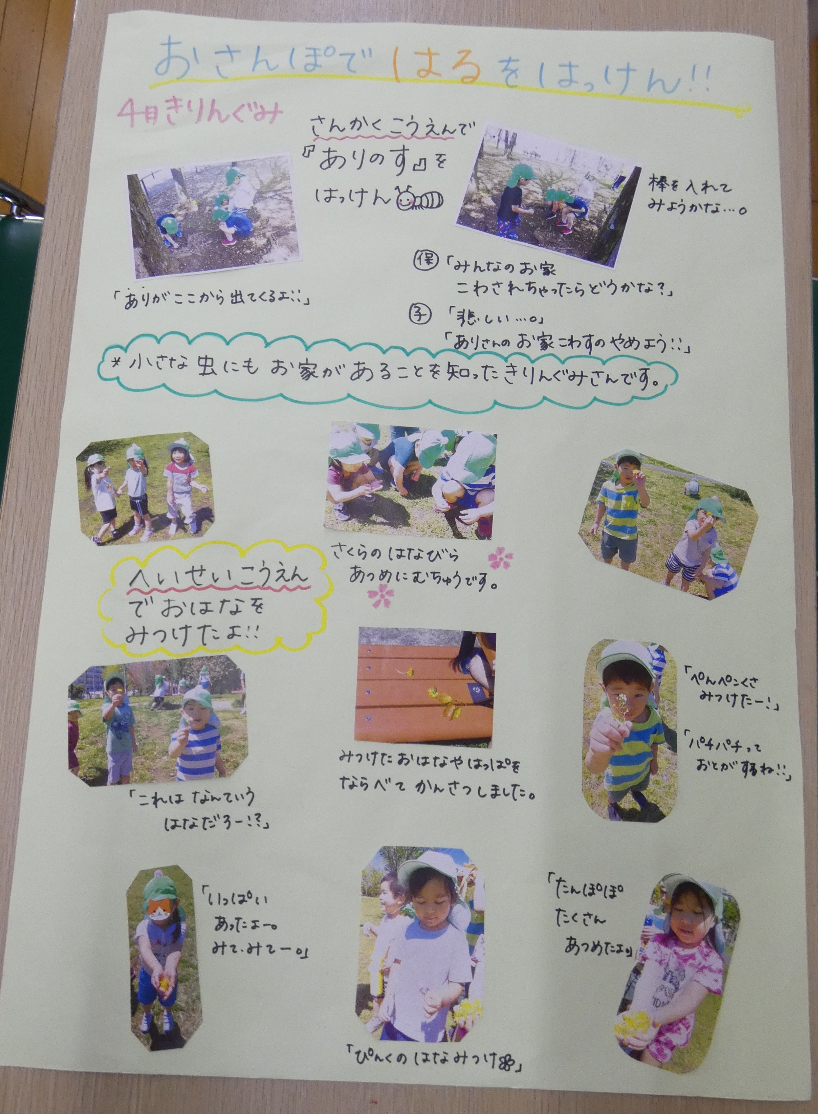 虫さんやお花をみつけました!アリさんにもおうちがあることに気が付いた子ども達